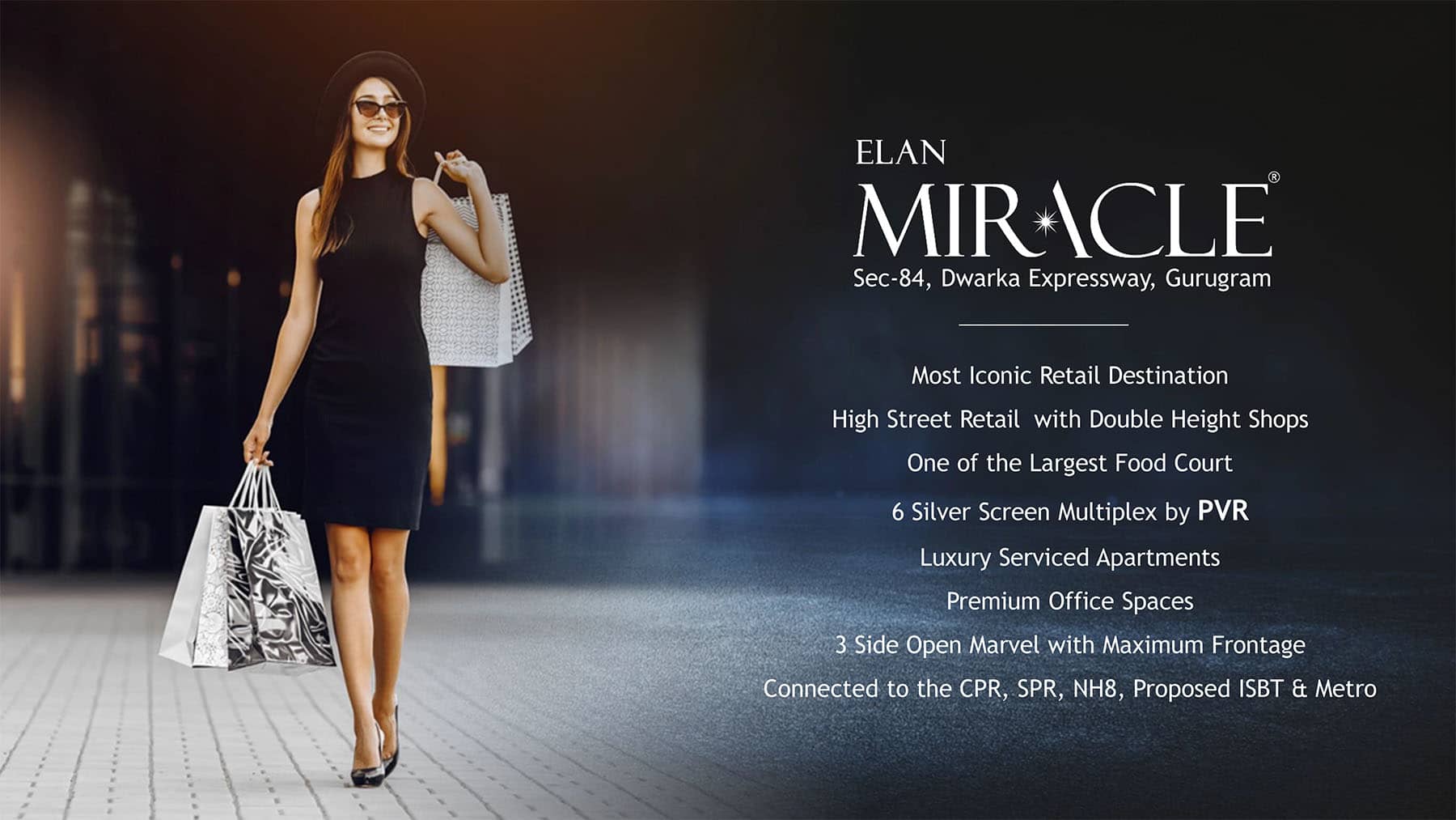 If we talk about amenities you will find that property is offering High street retail with double heights shops, Food court, Multiplex by PVR and luxury serviced apartments with one of the biggest club house in commercial project. The property is offering luxurious area of 5.9 acres of land with beautiful landscapes and greenery all around the property. In terms of safety and security also property is very amazing offering full time CCTV surveillance and property staff assistance. The property is been designed by world class experienced architects and everything is very systematically placed. Investment with Elan Miracle is very wise decision with greater returns expected.